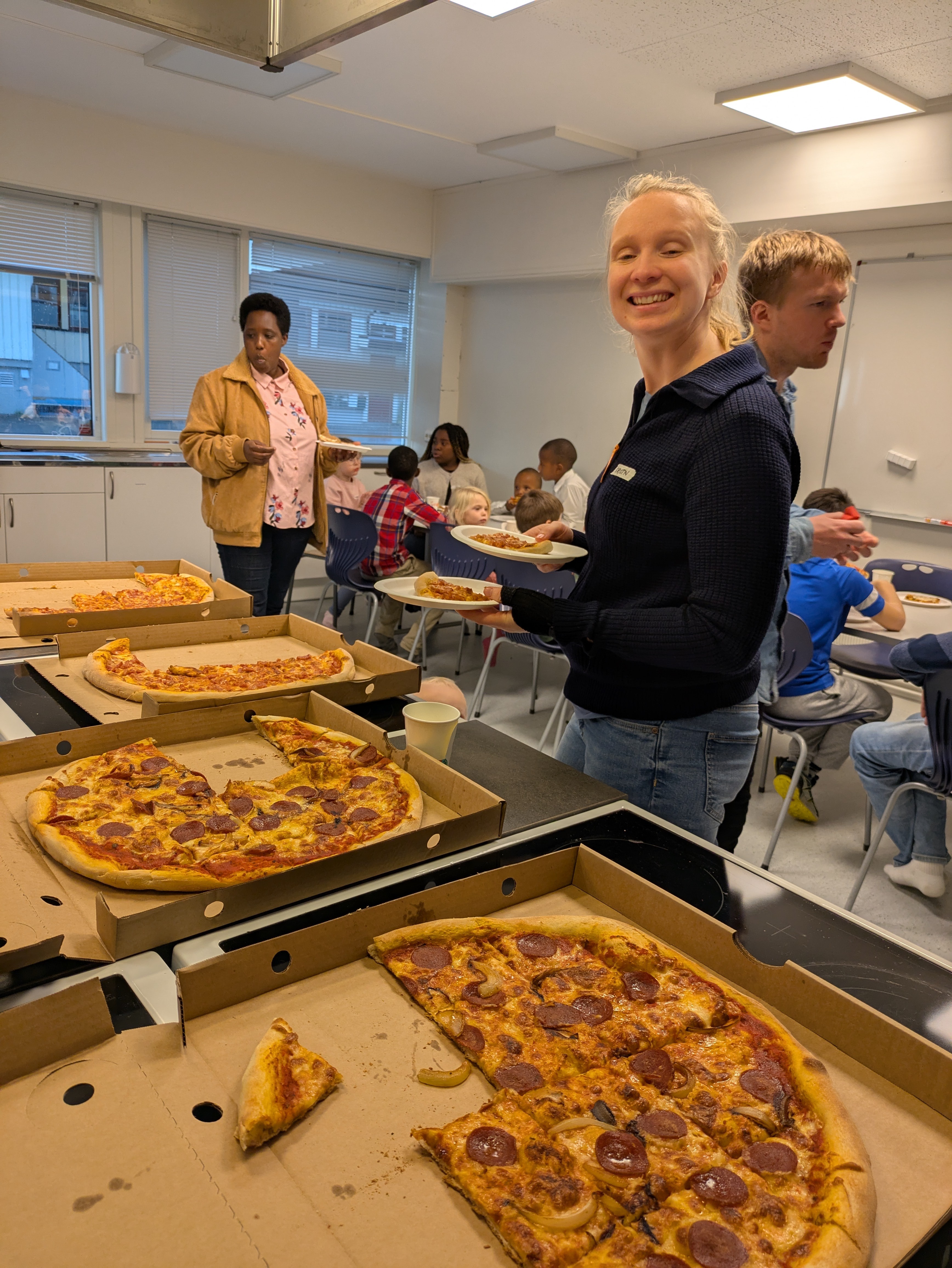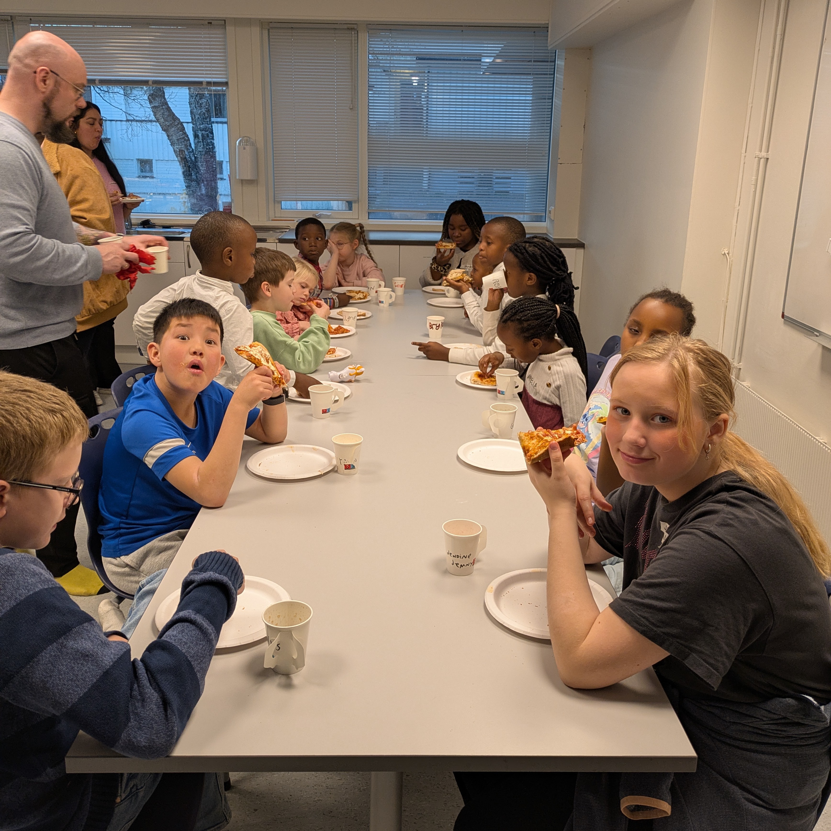 På Finnsnes ble besøkende metodister møtt med frukt og saft, og etter å ha sunget litt, lekt litt og fått høre en bibelhistorie, var det tid for lunsj. Etter mer dans og lek dro gjengen til en gymnastikksal i nærheten til organiserte leker. Dagsleiren ble avsluttet med en sikker vinner: Pizza, og det var mange av dem.